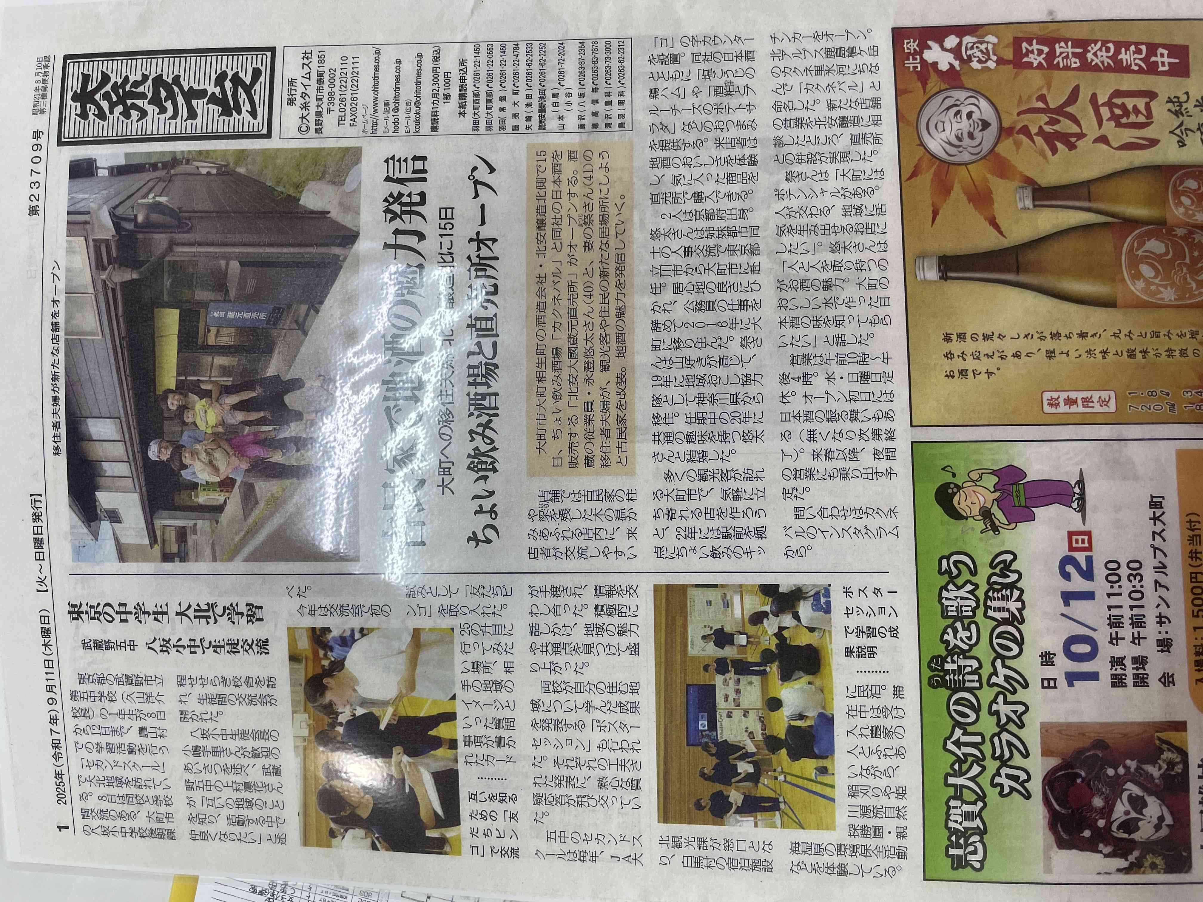 初日の八坂中との交流が地元紙に掲載されました。